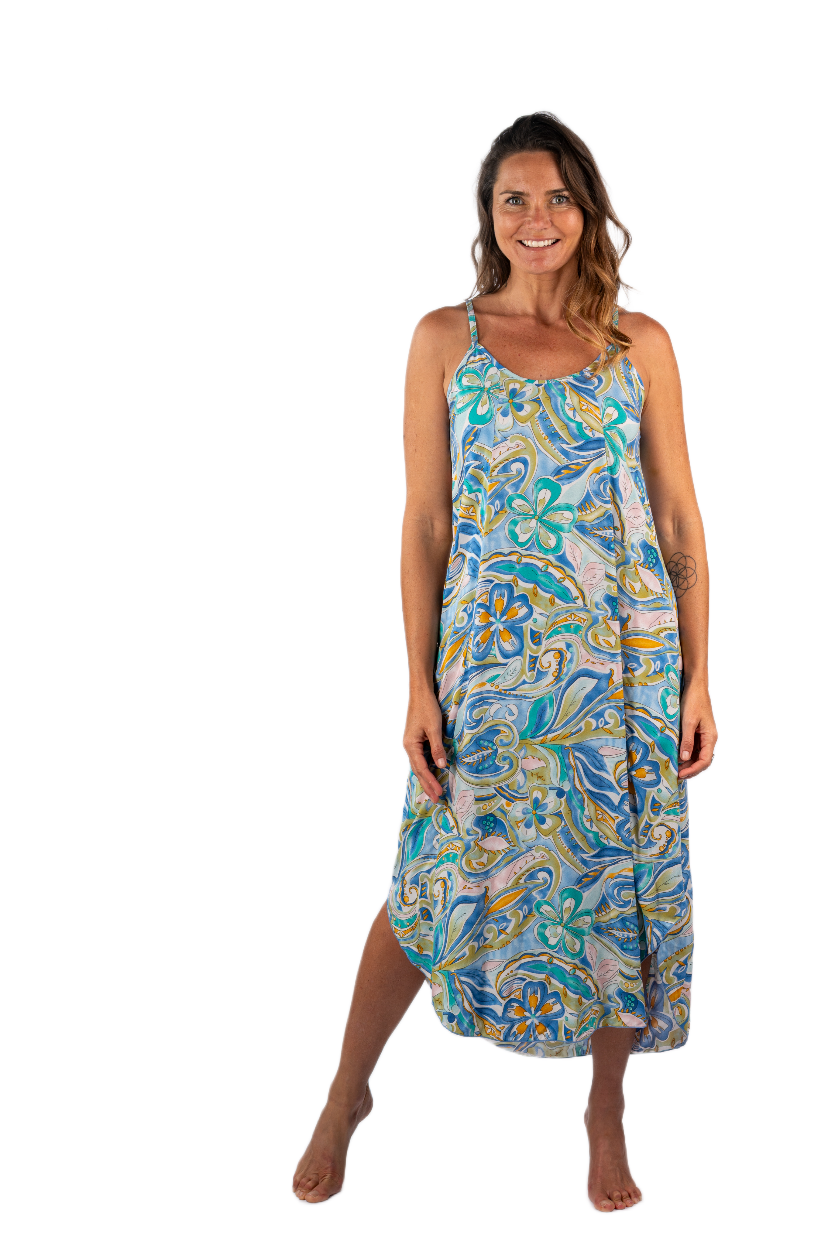 Tea length dress with pockets