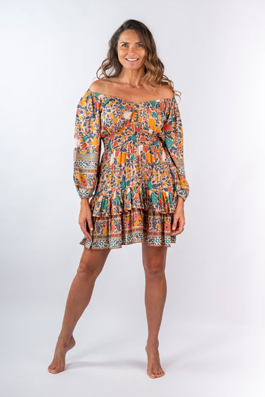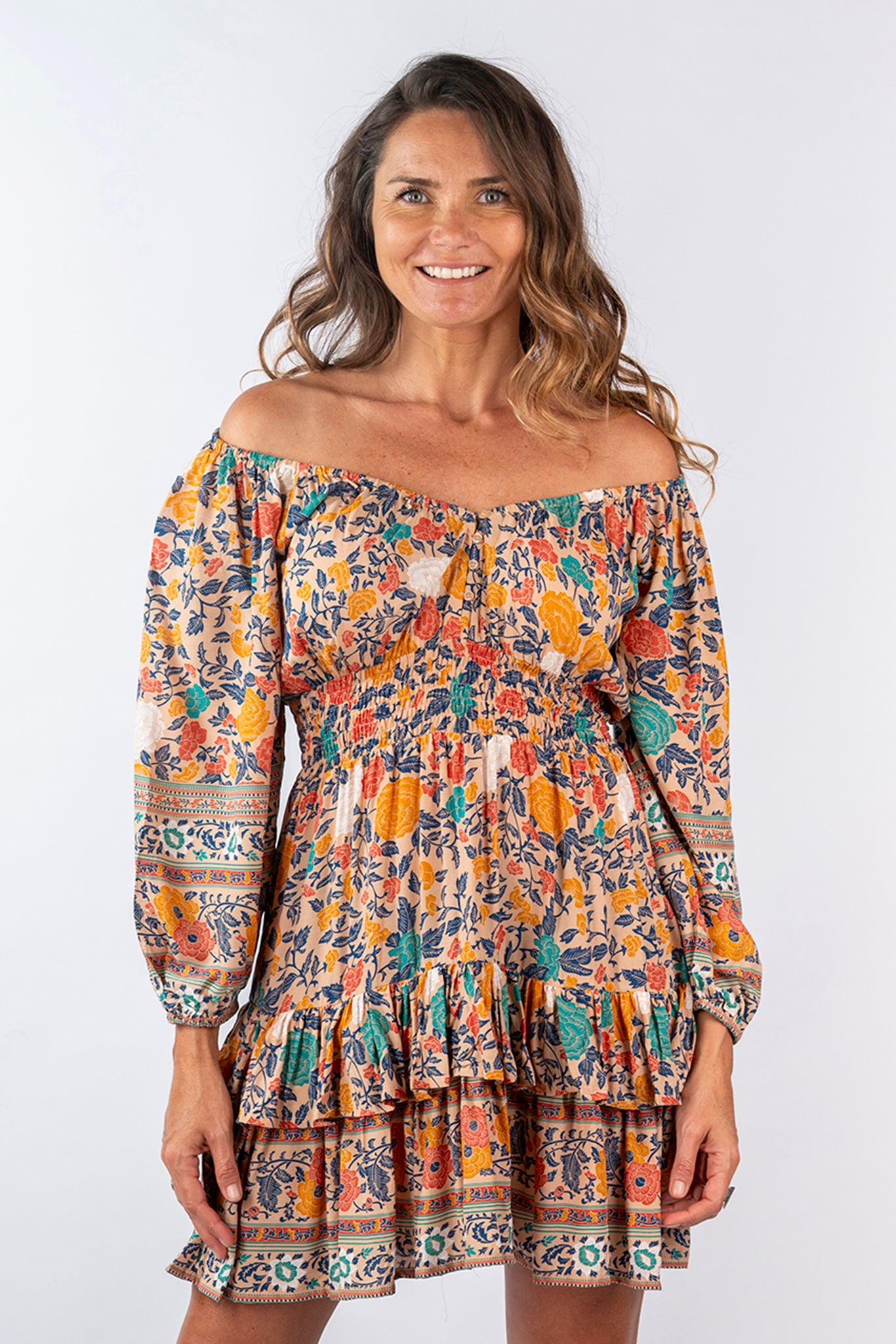 Grace Convertible Off-Shoulder 3/4 Sleeve Ruffle Dress
